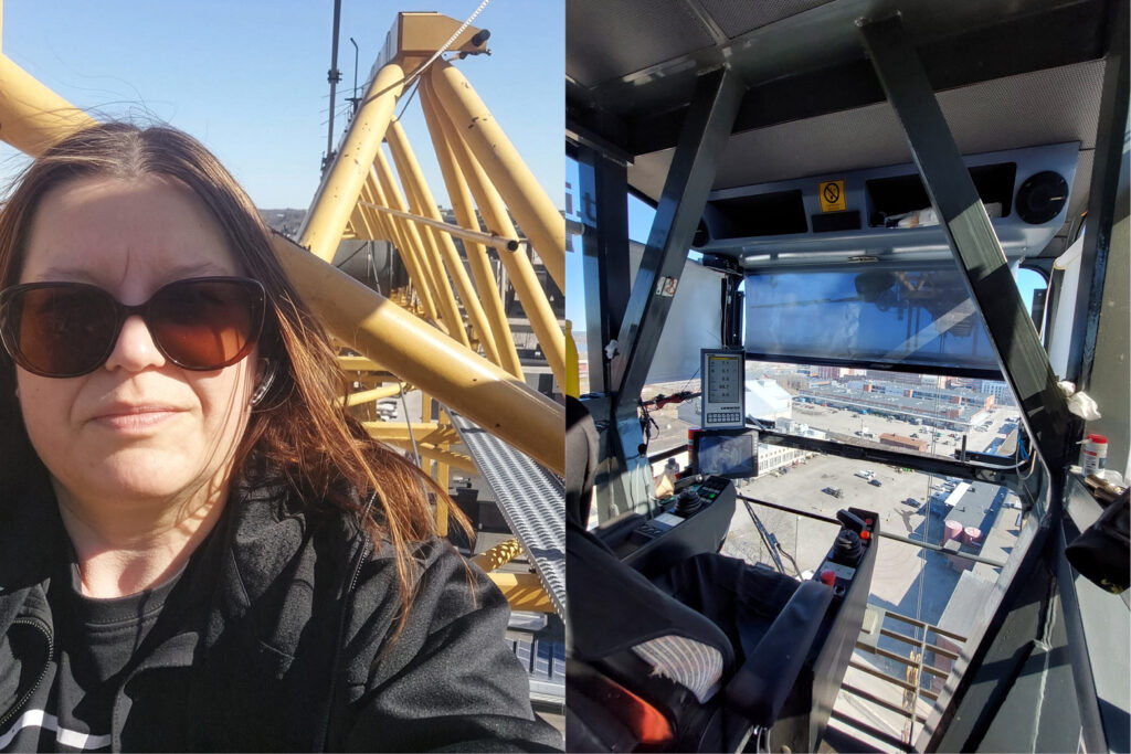 Torninosturin ohjaamosta Minna Simonen näkee koko työmaan yhdellä silmäyksellä. Hän liikuttaa painavia elementtejä tarkasti, seuraa säätä herkeämättä ja pitää työmaan tahdin yllä. Työn palkitsevuus syntyy maisemista, yhteispelistä ja siitä, että ilman nosturia rakennukset eivät nousisi. Mikä on mieleenpainuvin hetkesi torninosturinkuljettajana? Rakensin Kirkkonummen kaapelitehtaan tornia Suomen suurimmassa torninosturissa. Korkeutta sillä on yli 200 metriä ja ohjaamoon